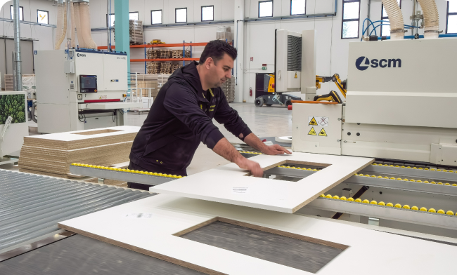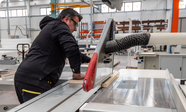All’interno di uno spazio di 1000 m2, banchi di falegnameria artigianale e software di ultimissima generazione fanno da regia ad un sistema produttivo complesso, supportato da un parco macchine top di gamma, tradizionali e automatiche.