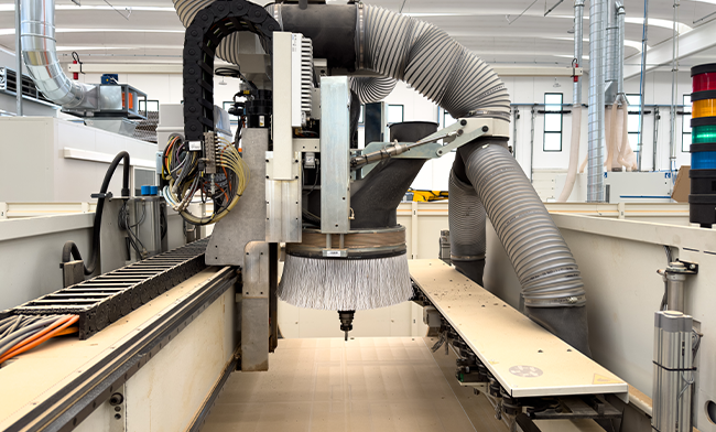 Per l’asservimento delle due macchine principale del reparto, una Sezionatrice e una Nesting 5 Assi: permette una gestione efficiente e sostenibile degli sfridi con una tracciabilità completa grazie all’etichettatura automatica.