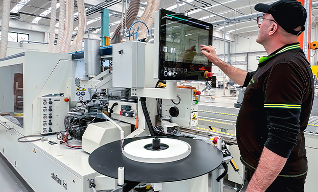 Per la finitura dei bordi di pannelli con spessore fino a 60 mm che garantisce velocità di esecuzione e saving di forza lavoro.